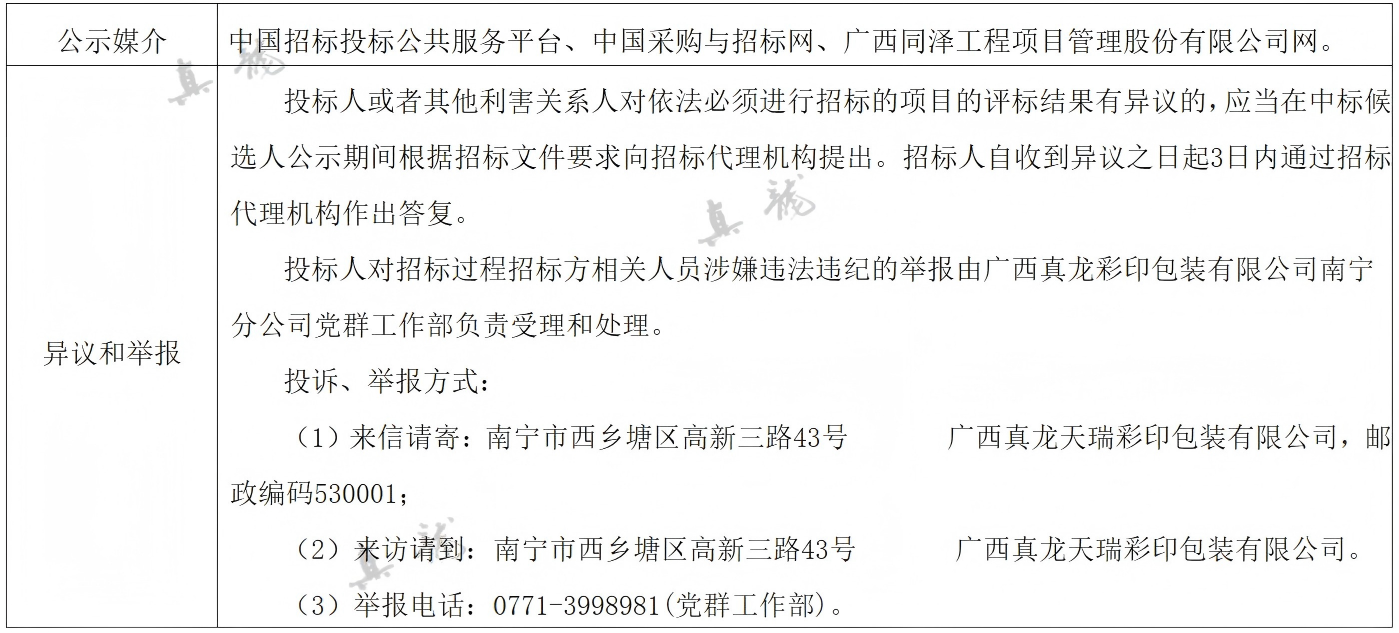 廣西真龍彩印包裝有限公司南寧分公司2025-2027年度環(huán)保技術服務委托合同(項目編號:GXTZ-ZB-2025第(593)號)中標候選人公示