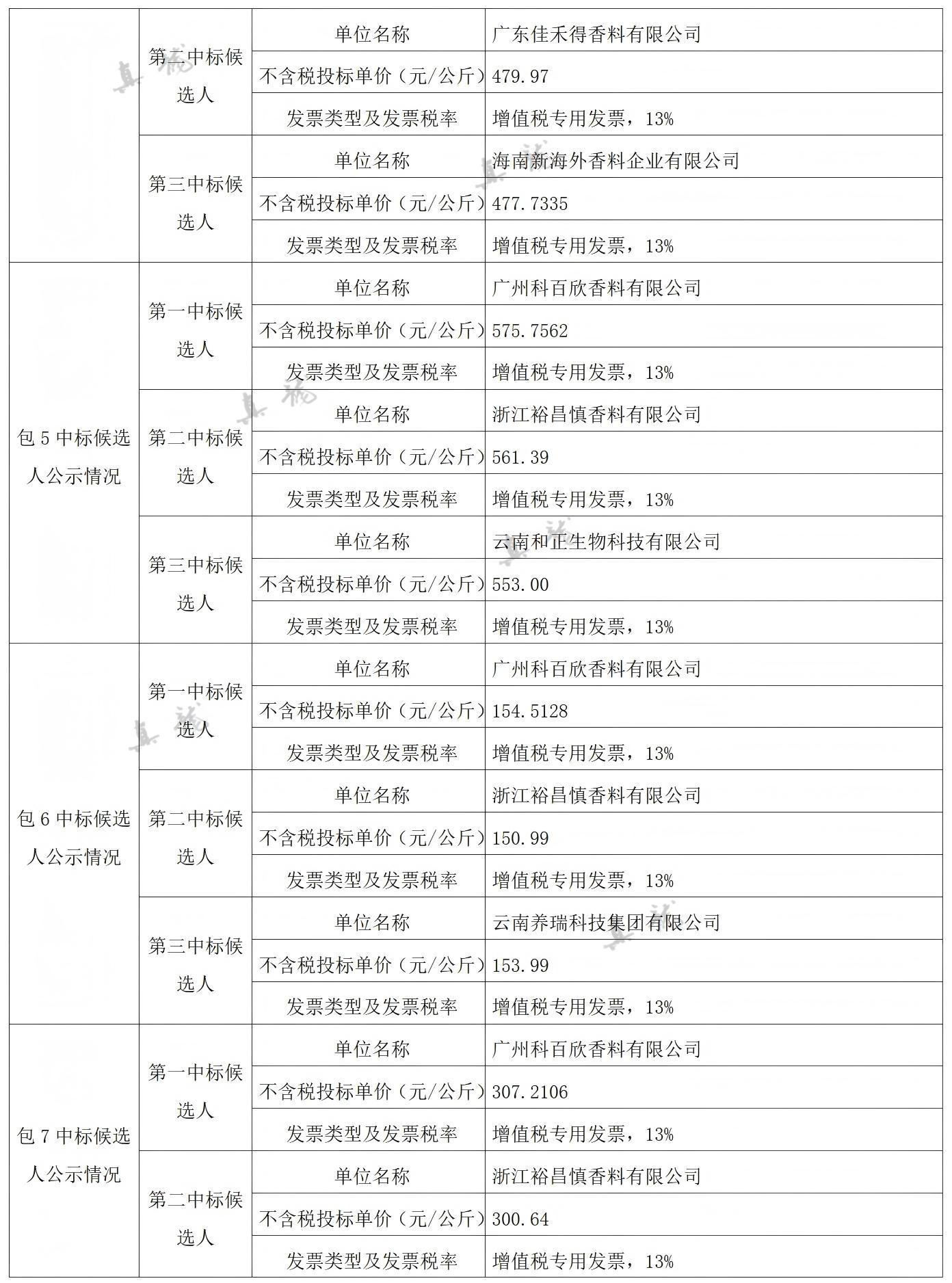 廣西中煙工業(yè)有限責(zé)任公司2026-2028年自主品牌香精香料采購之復(fù)合體采購第一批(項目編號:B202501BA2001767947560)中標(biāo)候選人公示